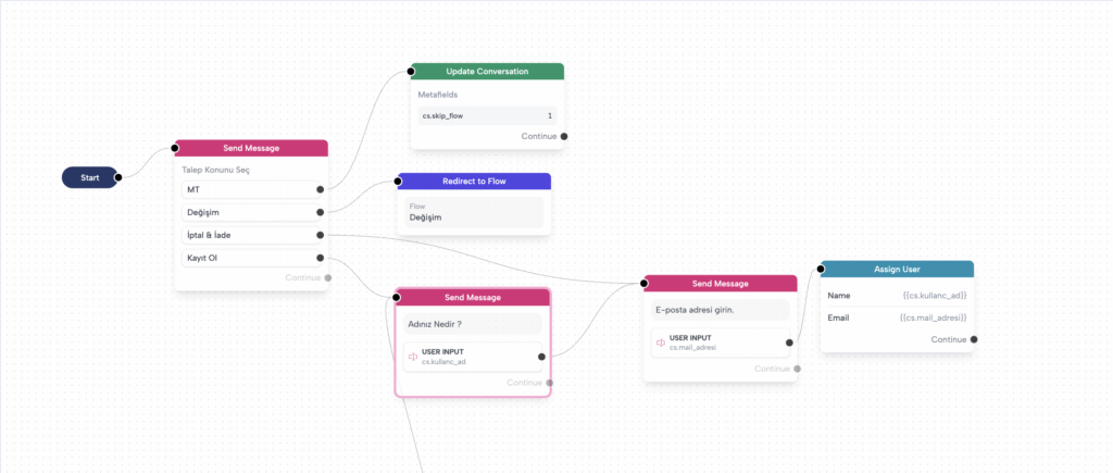 - Bir nevi “Eğer kullanıcı A cevabını verirse şu akışa, B cevabını verirse bu akışa git” kuralı oluşturursunuz.